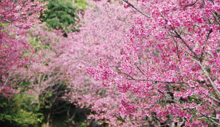 沖縄の春の訪れは1月後半。日本列島よりはるかに早く桜が咲き始めます。
