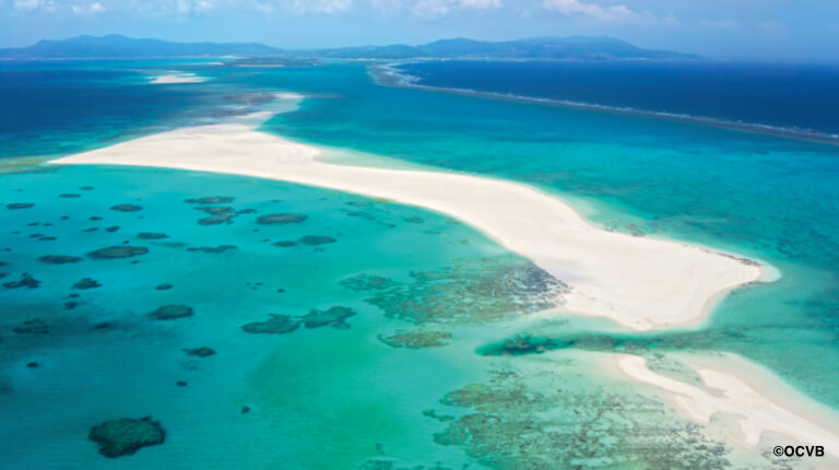 エメラルドグリーンのビーチ、真っ白な砂浜。